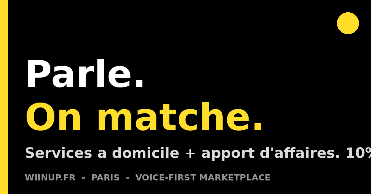 Ta prochaine mission est déjà sur Wiinup. Apport d'affaires qualifié, mise en relation géolocalisée, commission uniquement au succès. Le carnet de commandes de 2026 ne se prospecte plus — il se swipe.